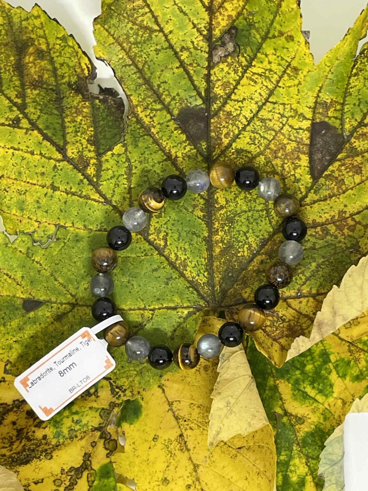 bracelet pour la protection avec des pierres vertueuses de labradorite, oeil du tigreet tourmaline. 14cm